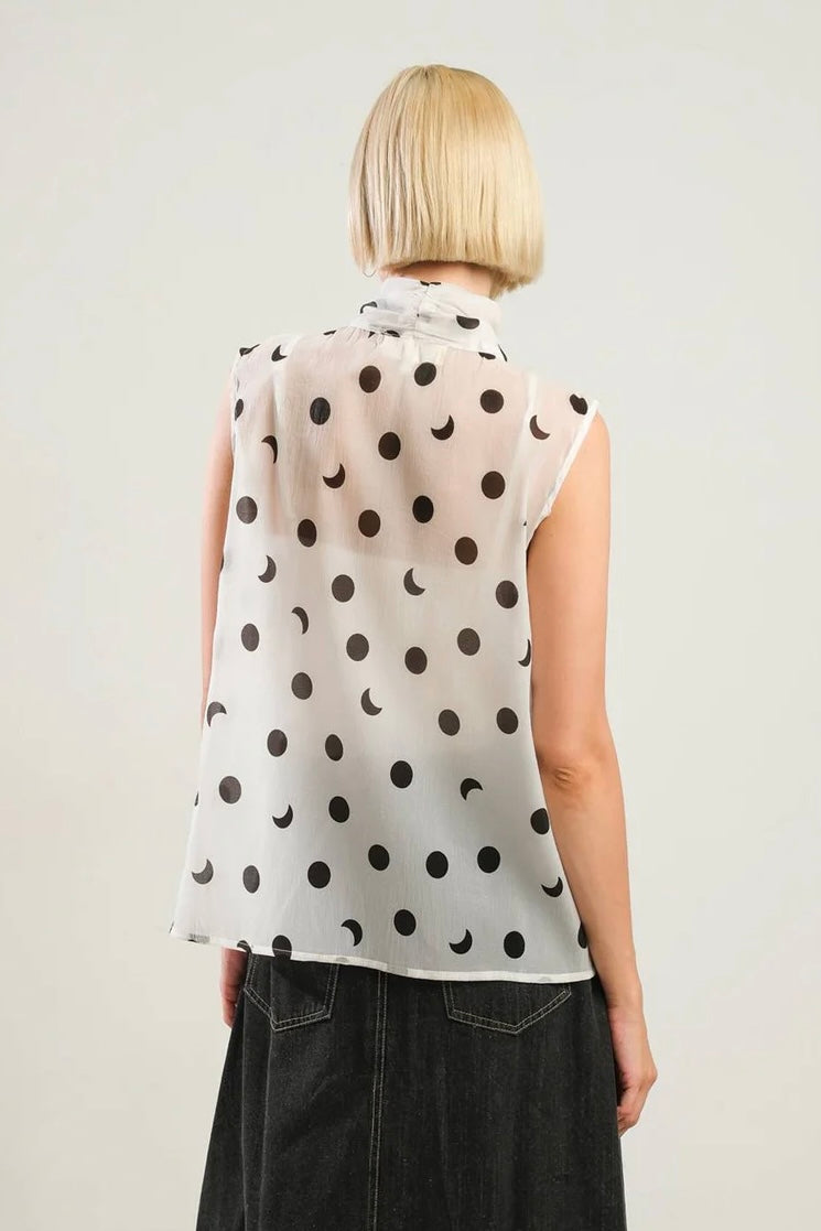 - Featuring a playful printed design, front bow tie, and sleeveless cut, this woven top will add a touch of adventure to your wardrobe.