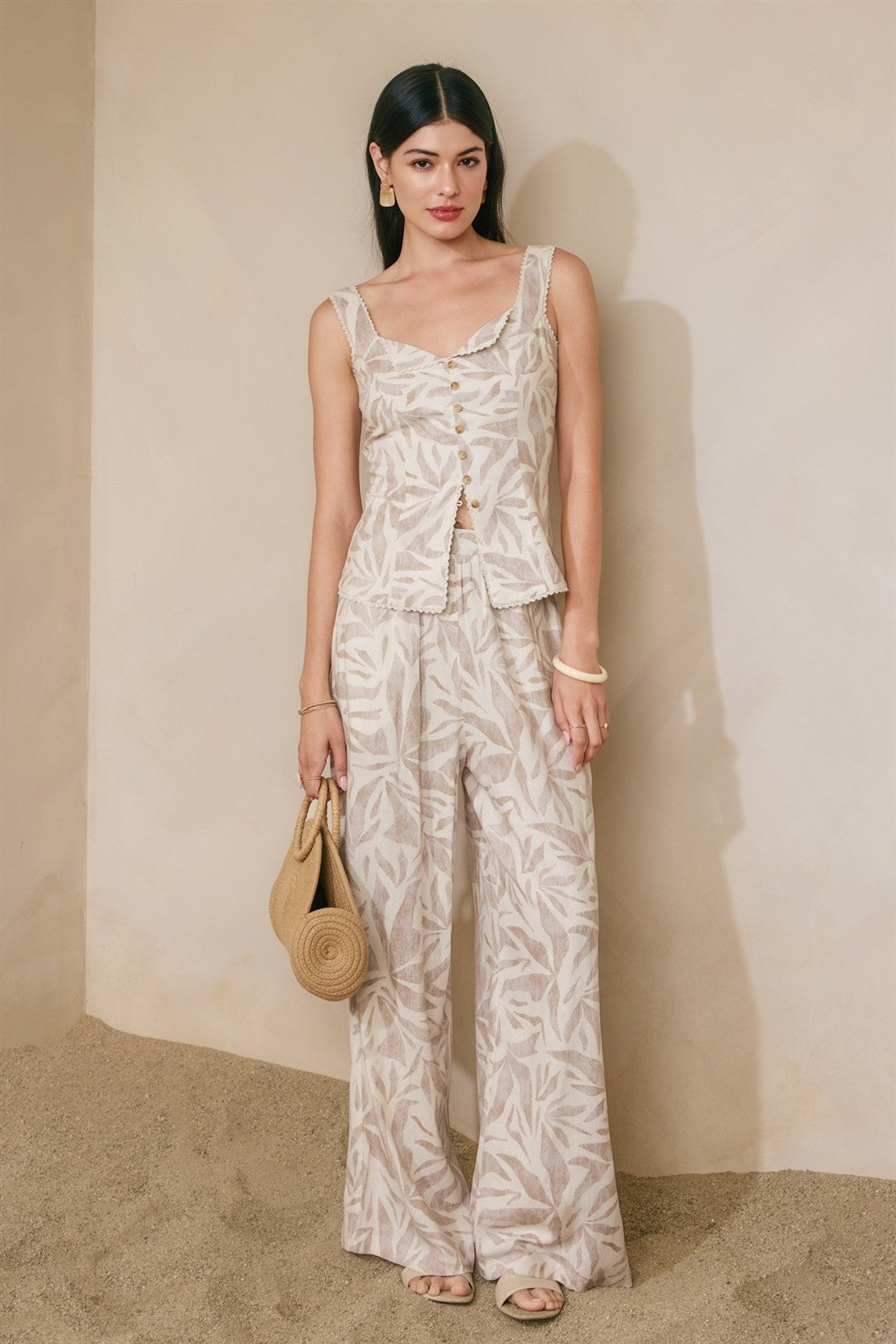 Experience comfort and style with the Seashore Pant. Made from lightweight rayon linen, these pants feature a vibrant tropical leaf print, straight legs for a flattering fit, and an elasticated back waistband for all-day ease. The hidden side zipper adds a touch of sophistication. Perfect for your sunny outings!